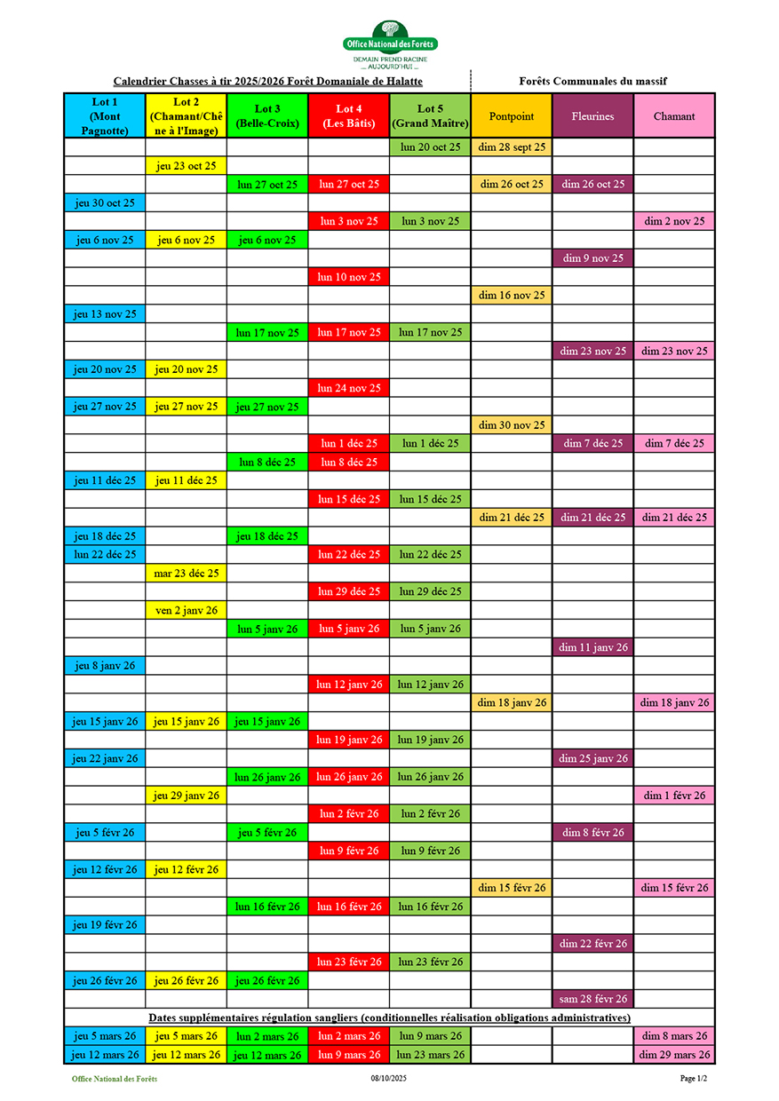 (Forêt domaniale et forêts communales) pour la saison 2024/2025
